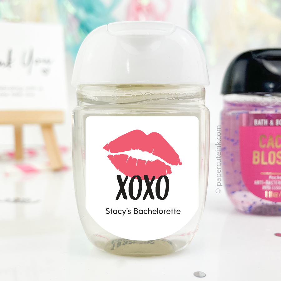Lipstick Kiss hand sanitizer labels for your Bridal Shower and Bachelorette Party favors.