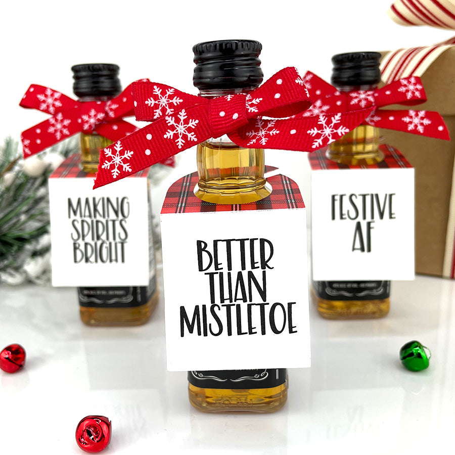 Tags are designed with a slit at the top and fit the neck of most 50ml miniature liquor bottles.